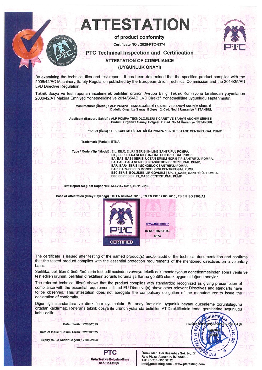 EEI Certificate of Conformity (ECP Series Wet Rotor Circulation Pumps)