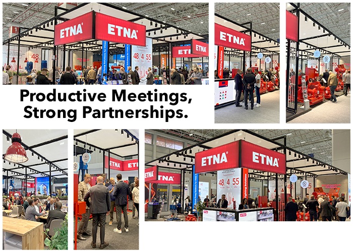 Throughout the exhibition, ETNA presented its wide range of innovative and sustainable solutions, including UL listed & FM approved fire pumps and fire pumps compliant with the TS EN 12845 standard, as well as the HIZIR mobile fire-fighting and flood drainage pump, frequency-controlled wet and dry rotor circulation pumps, cast iron and fully stainless steel multistage centrifugal pumps and booster systems, drainage pumps, and custom-designed protection and control panels.
