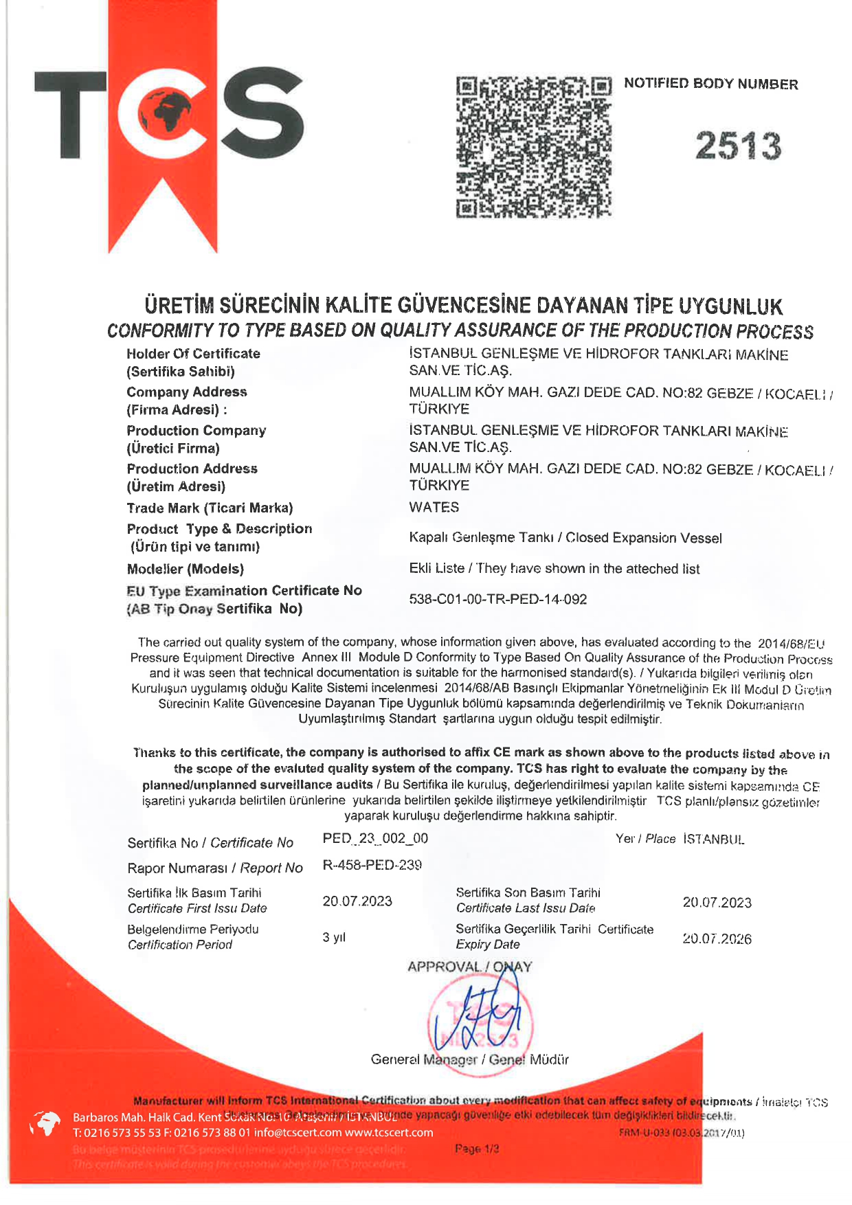 TSE BELGESİ (Genleşme Tankı-TS EN 13831)